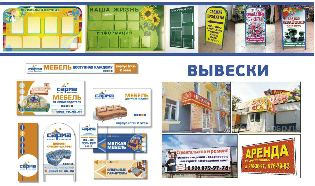 С радостью изготовим для Вас как уличные, так и внутренние стенды, у нас Вы можете заказать пластиковые или металлические стенды, со сменной или постоянной информацией, со стеклянными дверцами на замке или с пластиковыми подвесными конвертами под файлы, а также штендер рекламный и дорхенгер. Выбор видов и вариантов оформления безграничен! Делаем качественную и яркую печать.
