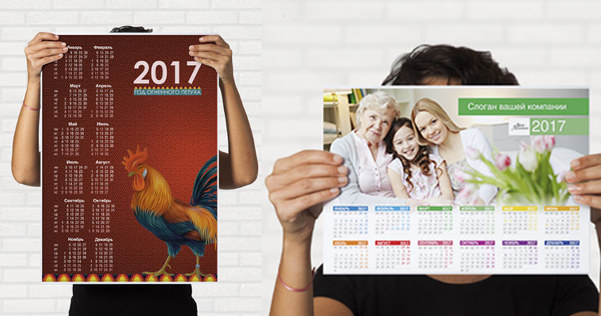 Однолистовой календарь-плакат (формат А2, бумага 150 гр)